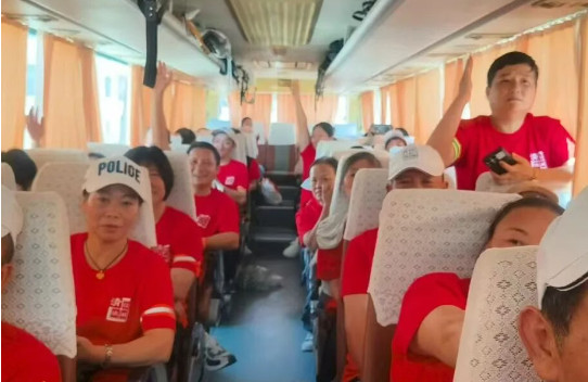 在前往仙島湖的途中,車廂變身為“移動課堂”。方園書記發(fā)起黨史問答,大家踴躍搶答,在互動中深化紅色記憶,讓紅色教育從“靜態(tài)聆聽”變?yōu)椤皠討B(tài)參與”。