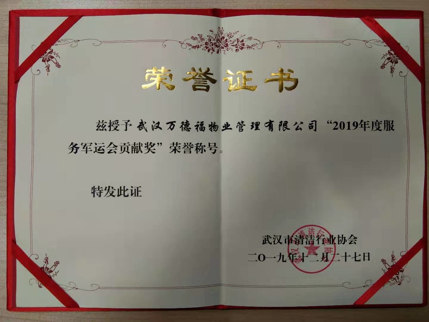 2019年度服務(wù)軍運會貢獻獎