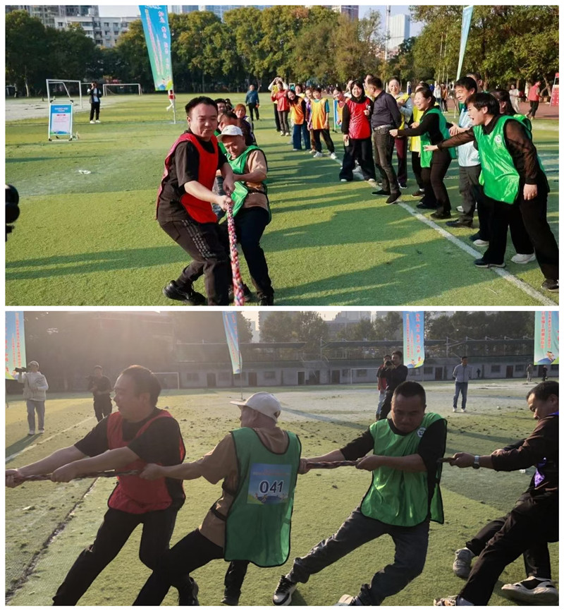 拔河比賽現(xiàn)場尤為激烈,隊員們腳抵著腳、肩并著肩,迅速形成合力,啦啦隊員齊聲助威,吶喊聲此起彼伏,大家緊緊擰成一股繩,全力以赴,賽出了健康、快樂,更展現(xiàn)了團結(jié)、和諧的精神。